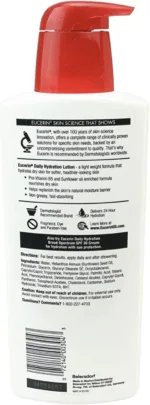 Eucerin Daily Hydration Lotion is a lightweight unscented body lotion that is specifically formulated to replenish the skin’s natural moisture barrier. This daily moisturizing lotion for sensitive skin delivers 24-hour moisture for soft, healthy-looking skin. This body lotion for dry skin absorbs quickly, and is enriched with Sunflower Oil and Pro-Vitamin B5. This Eucerin sensitive skin lotion contains a non-greasy formula, is dye and fragrance free, and won’t clog pores. This body moisturizer can also be used as a hand lotion or foot lotion, or as an effective all-purpose unscented lotion for very dry skin. Eucerin Daily Hydration dry skin lotion is non-comedogenic and is perfect for everyday use. To use, gently massage this Eucerin lotion into dry skin. Eucerin is a dermatologist-recommended skin care brand that is based on an uncompromising approach to science. With skin care products designed to restore and sustain healthy-looking skin, families everywhere look to Eucerin to enhance outer beauty and self-confidence.